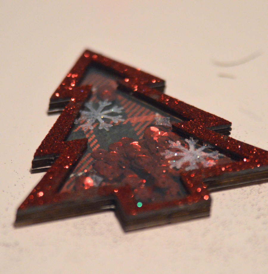 I layered the chipboard onto the base, then put a tsp of sequins in.