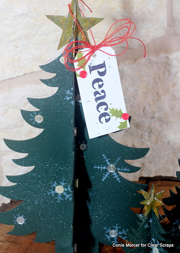 Hi, Connie here with the 3D Chipboard Christmas Tree set by Clear Scraps. They are decorated with snowflakes and buttons!!! So festive and fun.