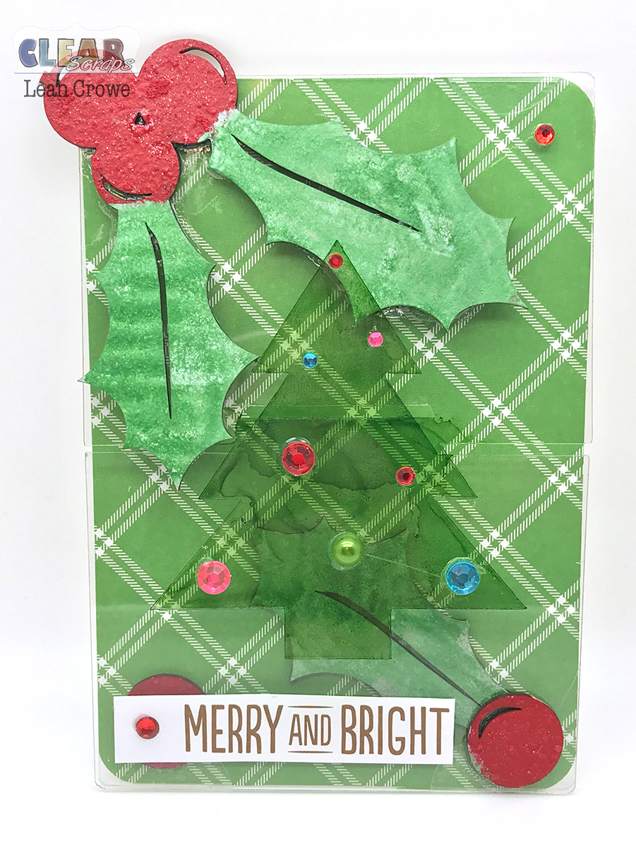 I used the Send it Clear Tree card and also the Holly Chipboard embellishments for this lovely card.