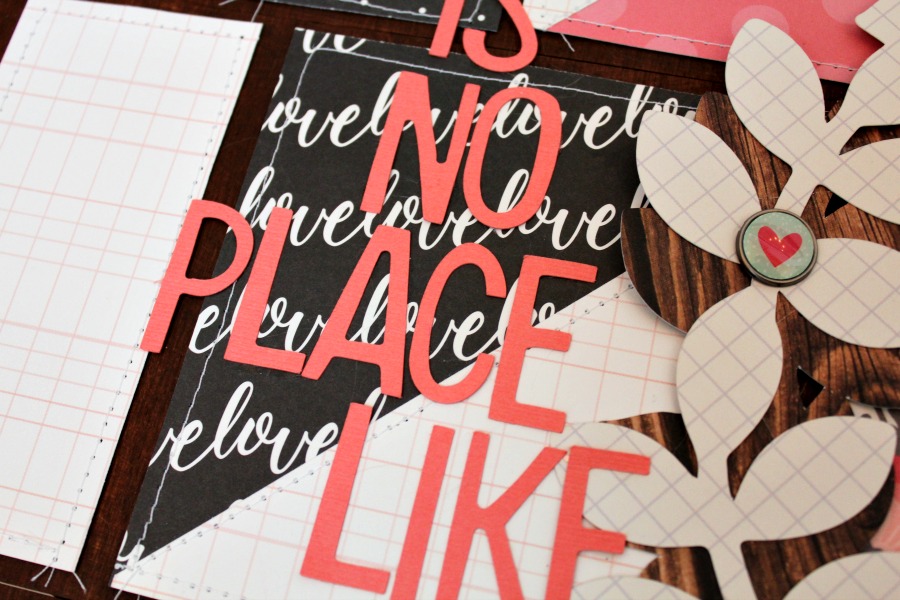 Additional products used: patterned paper: Pebbles, Simple Stories; card stock: Bazzill; brads, house die cut: Simple Stories; stamp: Maya Road; journaling pen: American Crafts; embossing powder: Recollections; embossing ink: Ranger; adhesive: Beacon, 3M; misc: sewing machine, thread, Cameo Silhouette, acrylic paint.