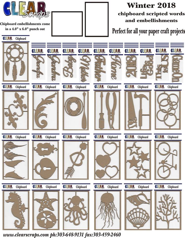 Here is a look at all the new scripted words and embellishment chipboard releases!! Check them out!!!!