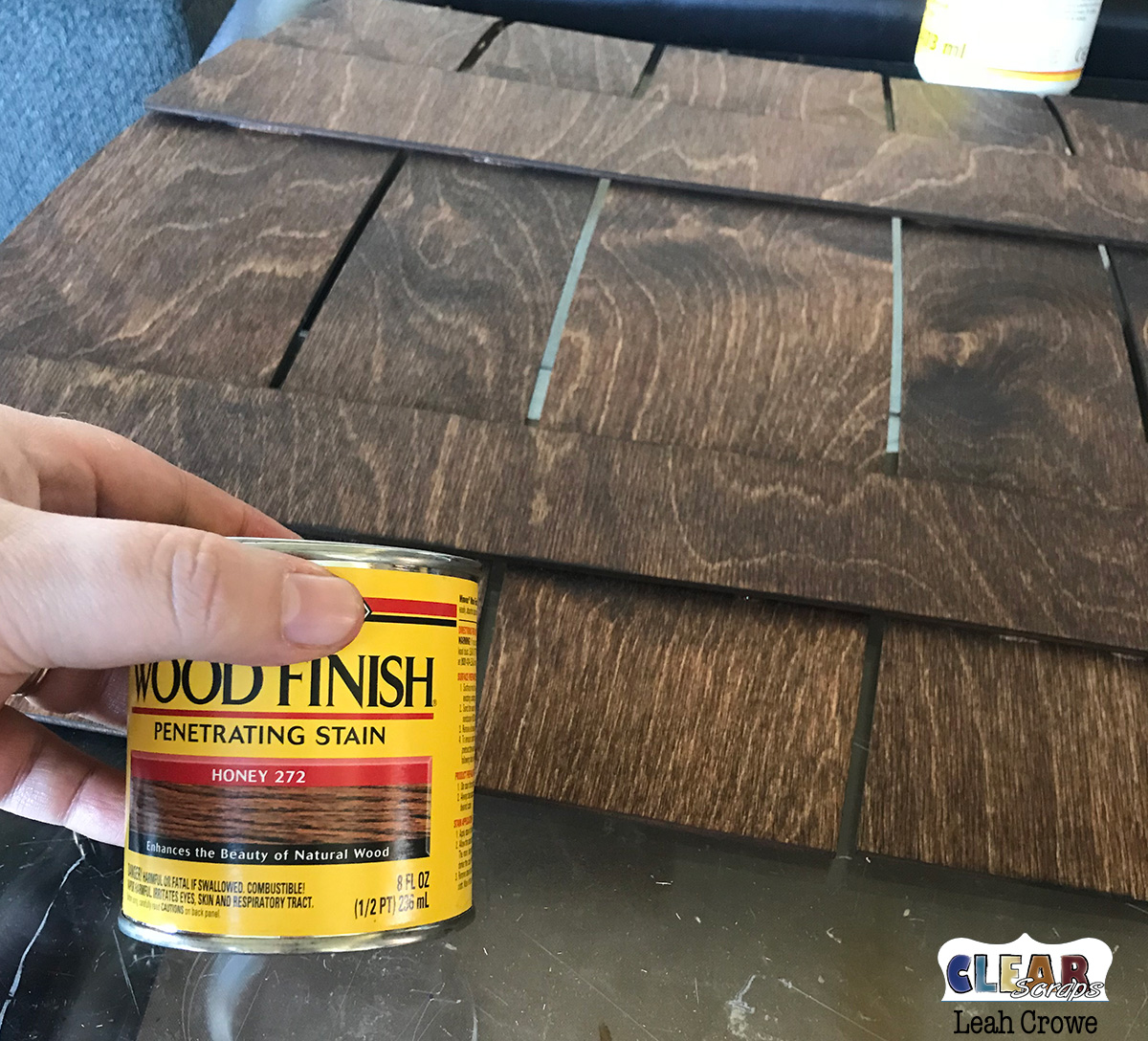Before I stained I sanded lightly using 220 grit sandpaper then wiped with a cloth to remove dust particles. I then painted on the Minwax stain, let it sit a few minutes, and wiped off with another cloth. I let it dry for about 3 hours then applied lacquer to seal stain. The wood grain of this wood is amazing!