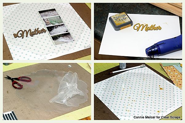 Hi, Connie here with a scalloped edge acrylic scrapbook page using products by Clear Scraps. I have created a short tutorial, to give a visual, of how the page was created.