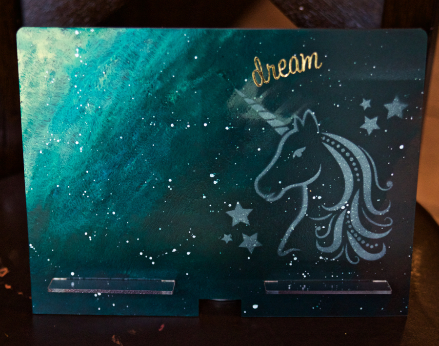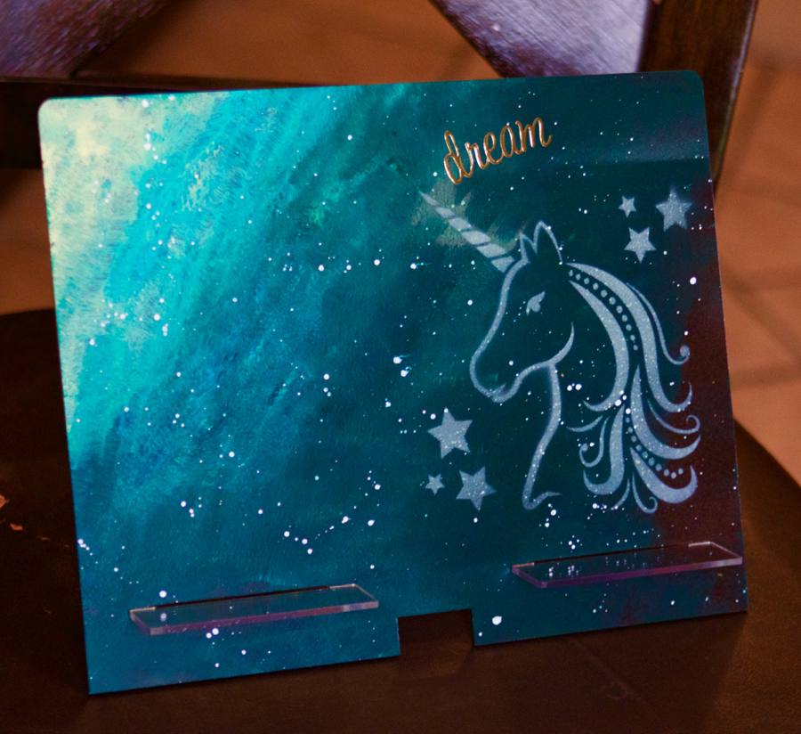 Wheyey there Clear Scraps family and friends, it's Pinky today and I am excited to share anew project with you today. A Tablet Stand that I made using the Clear Scraps Regular Tablet Stand and the NEW 6"Unicorn Stencil!