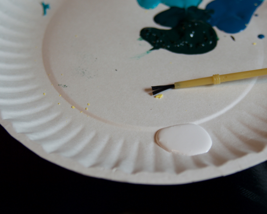 After that I took a white acrylic paint, and a small paint brush, dipped the brush into the paint, then shook it onto the Regular Tablet Stand for the star effects.