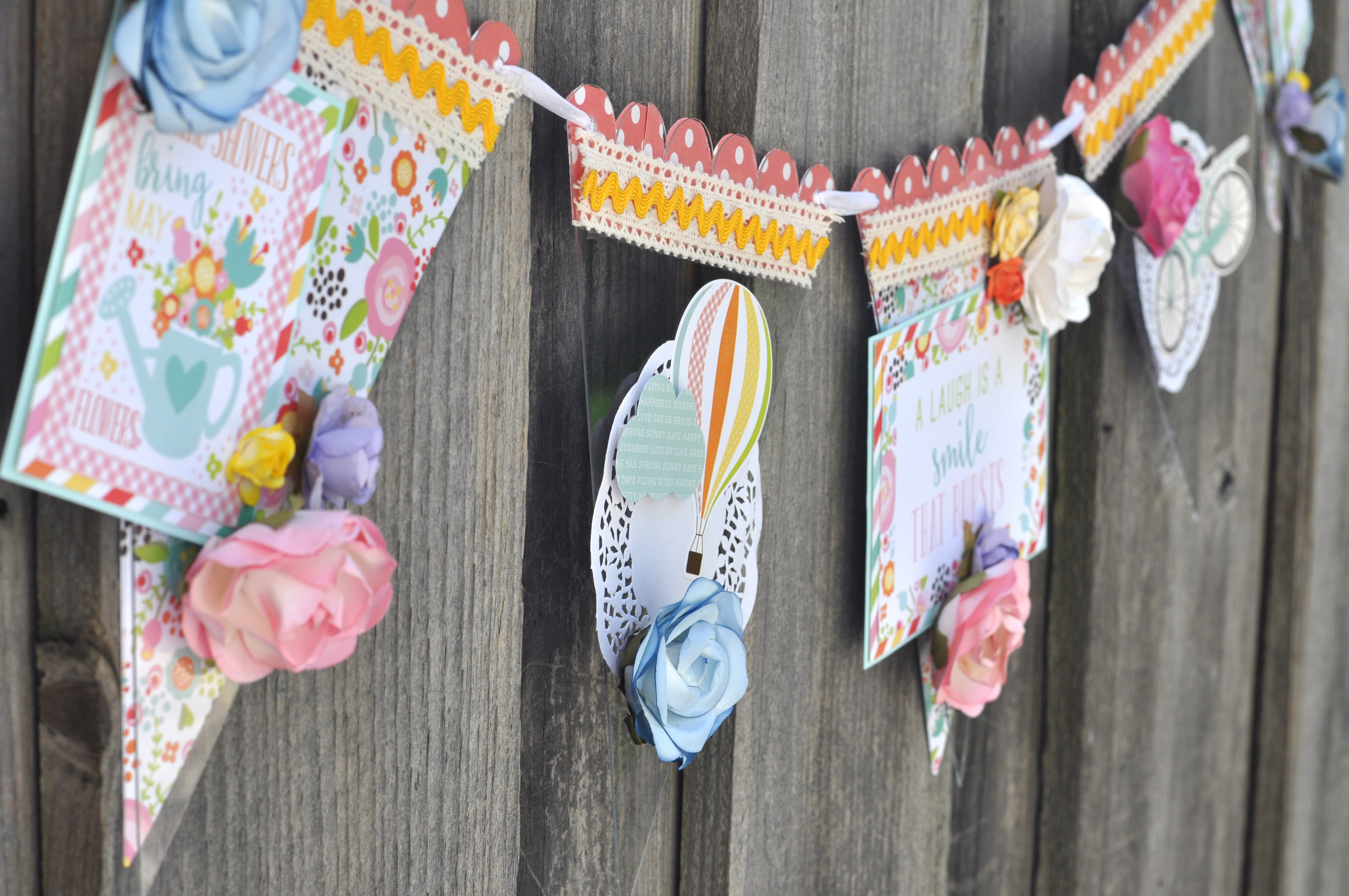 Filled with lovely spring colors, doilies and gorgeous blooms, this is one of my favorite banners to date. I love the dimension the clear acrylic provides.