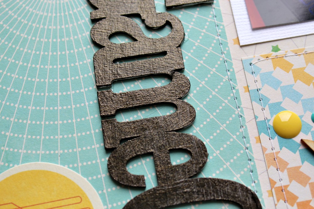 Sharing some additional shots of my page! I cut my patterned papers into different sized squares and rectangles to fit the place on the page. I then used my sewing machine to stitch around the borders before adding embellishments.