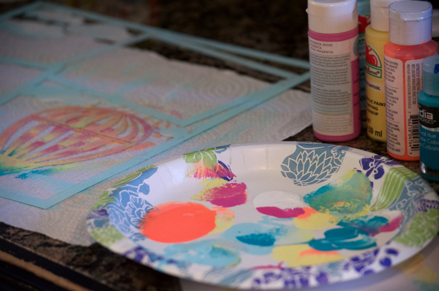 For this one I took the Air Balloon 12X12 Acrylic Layout and removed the protective film from the back then I started painting!