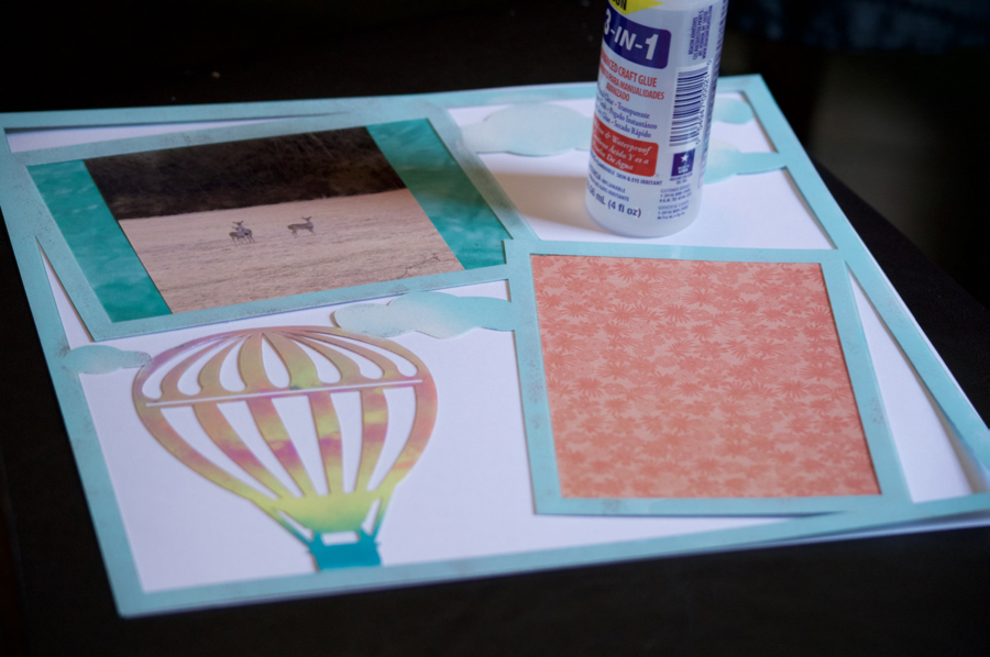 For the background I wanted to use white so the layout would pop, but I traced the frames onto patterned paper and cut them out, and adhered the into the frames as matting.
