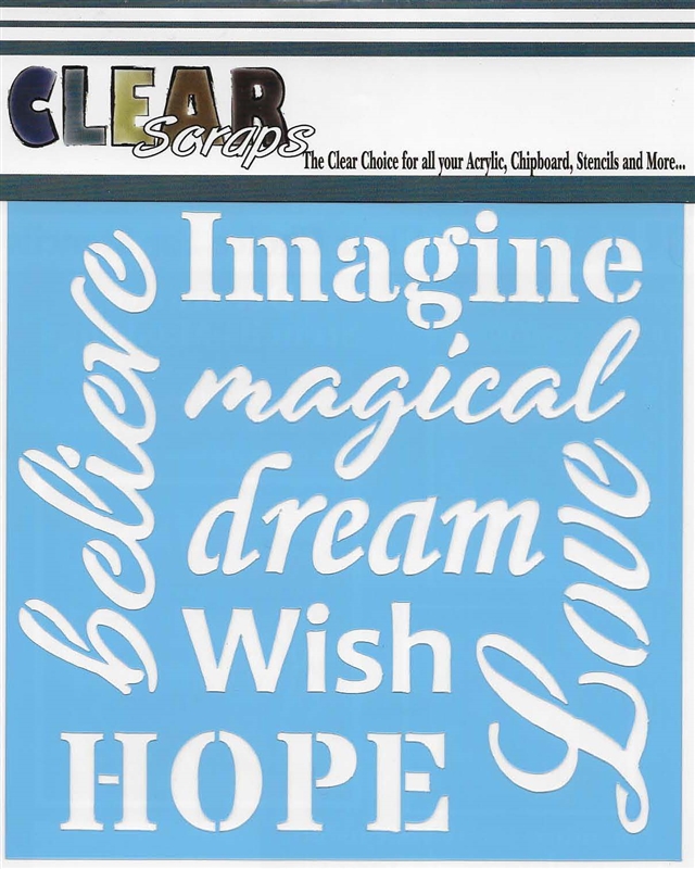 Hey there everyone, it's just Pinky again and this time I am here to share a Fancy Send It Clear Card that I created using the 6" Imagine Stencil which has several words on it!