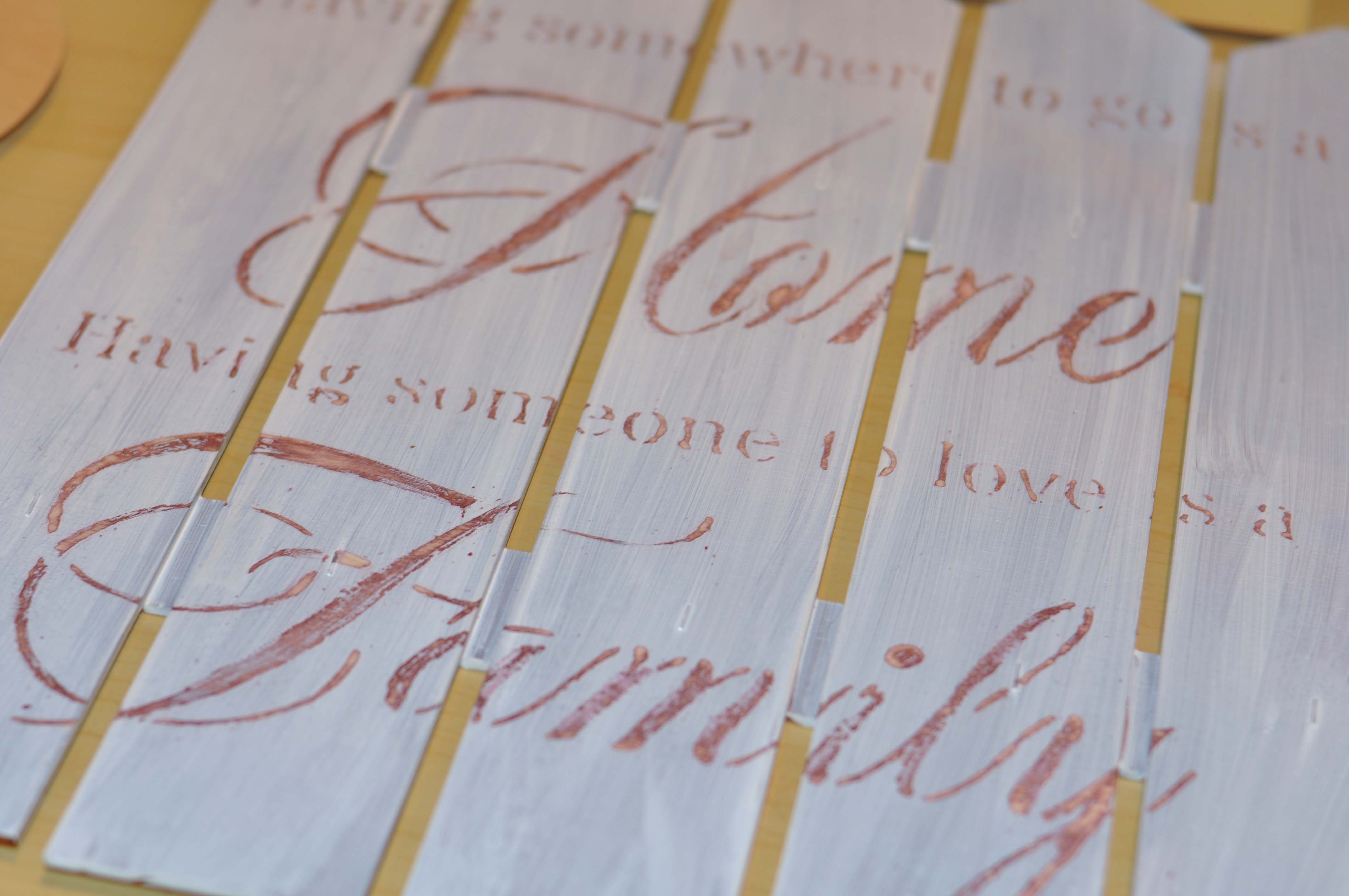 Hi everyone! Nancy here today to share with you a project I made using the Picket Fence Palette DIY and the Home, Family, Blessings wall stencil.
