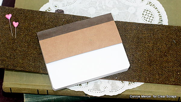 Hi, Connie here with a cute project using the Birch Wood Notes wood shapes by Clear Scraps. The wood shapes are great for making note books as well as cards. It comes with two pieces of Birch Wood that make a perfect front and back for any type project. Here is what I came up with~