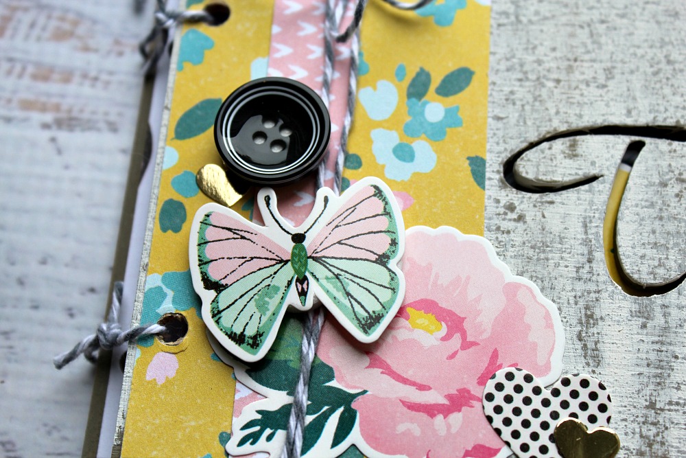 I embellished the outside of the pocket with coordinating ephemera to accent. I also stitched the outside edges with my sewing machine to secure.