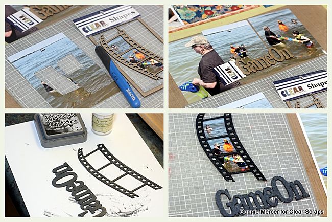 The chipboard pieces were embossed using Distress Oxide ink and embossed with clear coat embossing powder. They were both done at the same time and they both came out differently. The "GameOn" title came out a mat texture and the film strip is shiny. Could be the difference in the chipboard, no sure, doesn't really matter~ both look great!!!