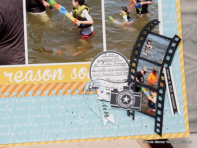 Hi, Connie here with a scrapbook page using the chipboard shapes and titles by Clear Scraps. I love adding these chipboard embellishments to my pages. They are easy to add color to and they happen to look fabulous plain!