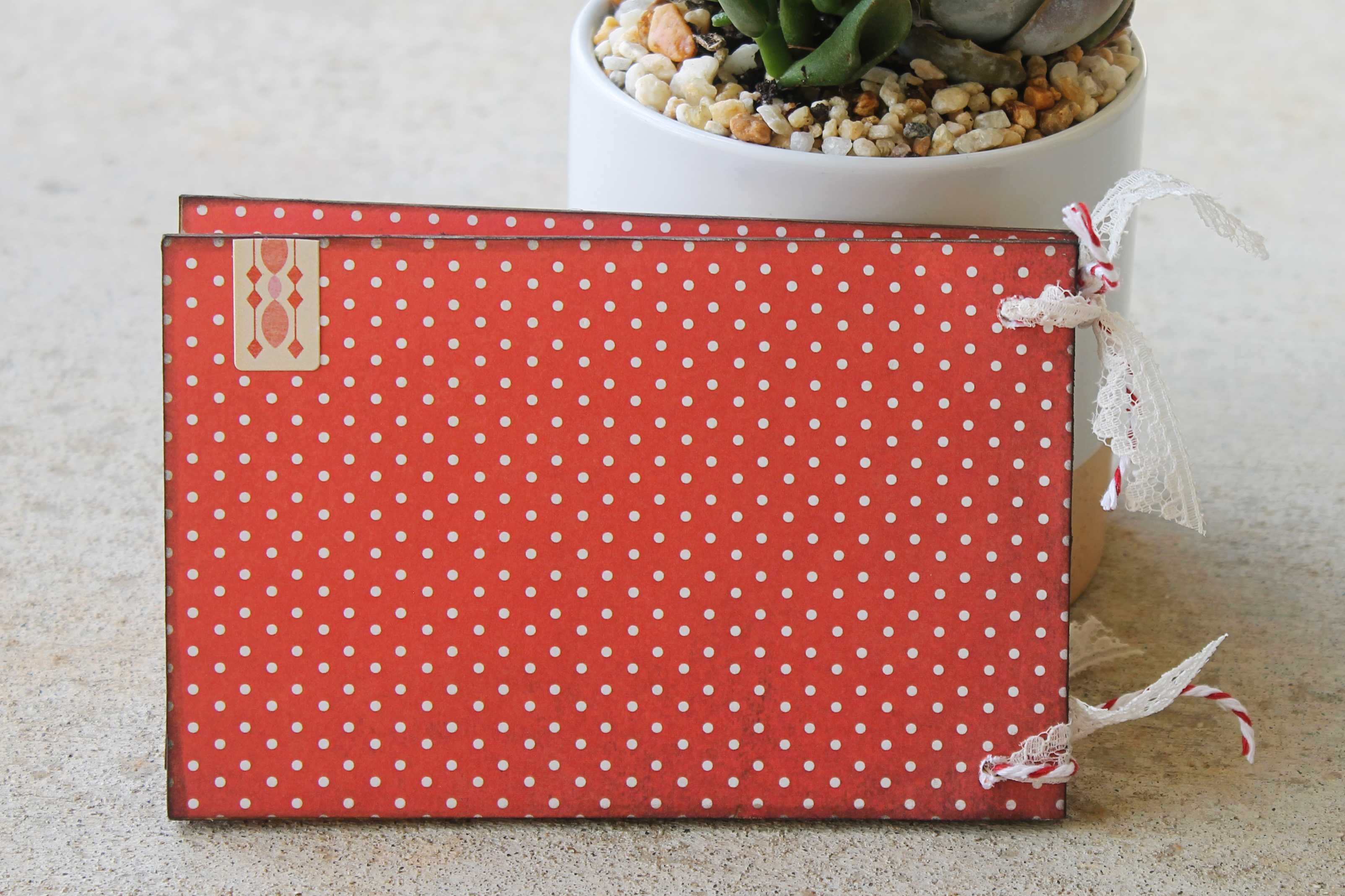 To complete the project, I drilled holes through the left side of the card and tied some ribbon loosely so it's easy to open and close.