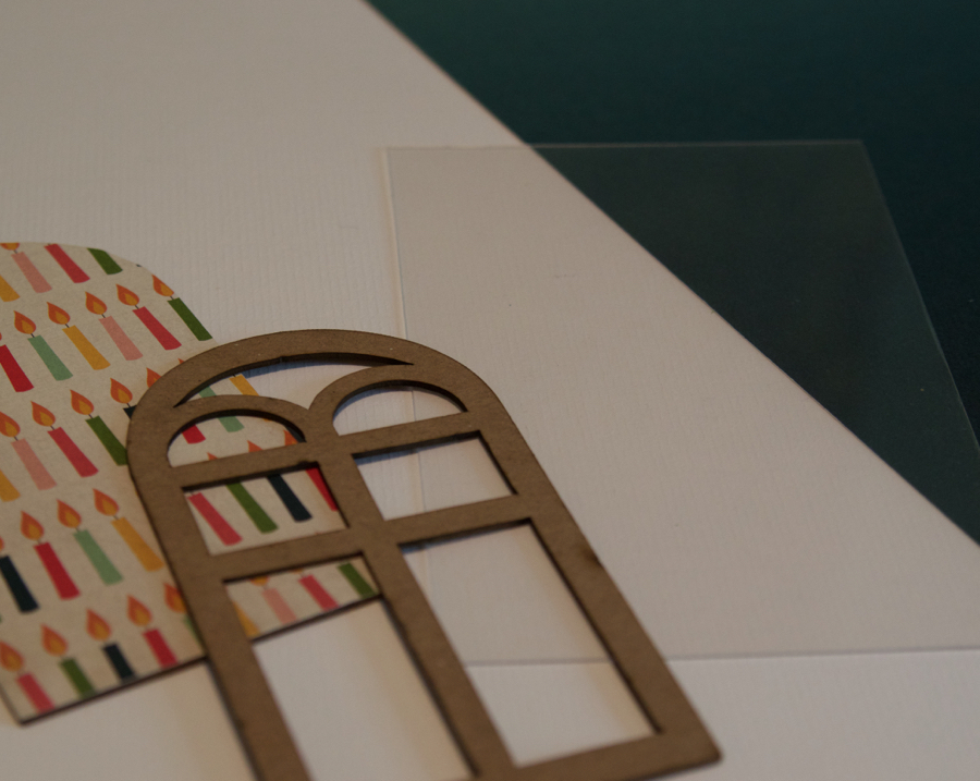 So I added a sheet of acrylic INSIDE the Mini Shaker WINDOW, and made sure to take photos, so its easy to understand. First cover both sides of the base chipboard of the Mini Shaker WINDOW with patterned paper.