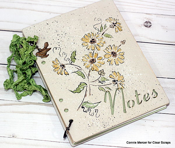 Clear Scraps: Wood (notes) Album and 6" Bouquet Daisies stencil