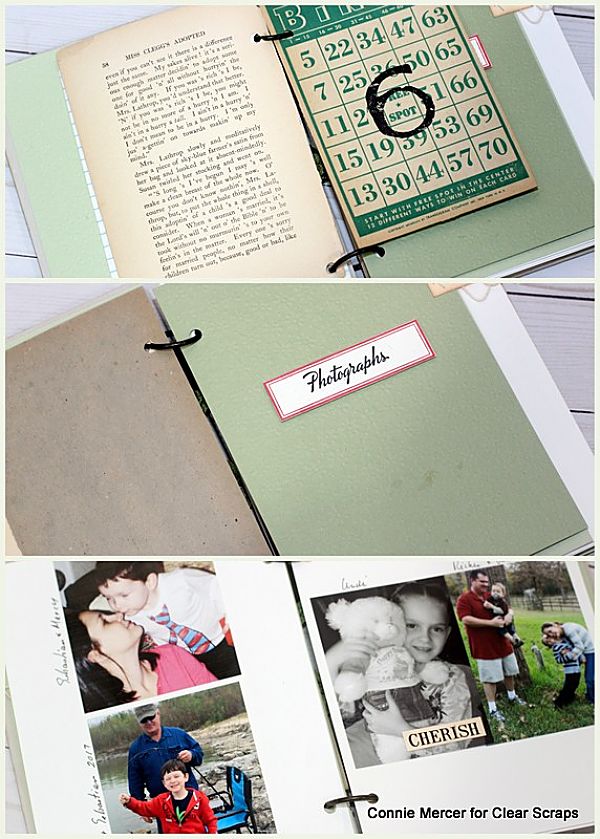 Hi, Connie here with a useful and cute teacher's gift using the Notes Wood Album by Clear Scraps. My example is more like a junk album. It holds duplicate photos and ephemera that is really cool. It has envelopes for storage and blank pages for notes. Let me show you~