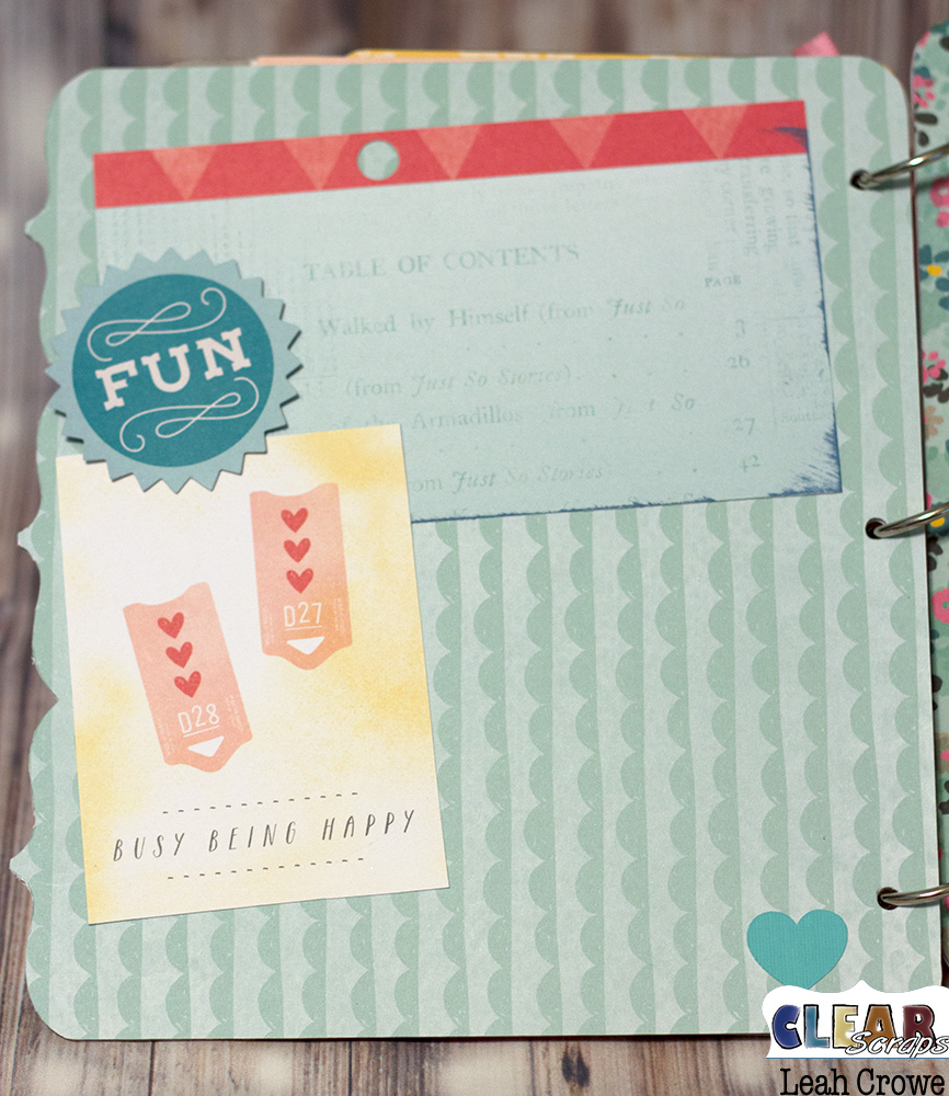 This album comes with three acrylic pages and two chipboard. I covered the pages using Dear Lizzy pattern paper. I also love to make these mini albums using my old paper stash, because all the paper typically works together nicely.