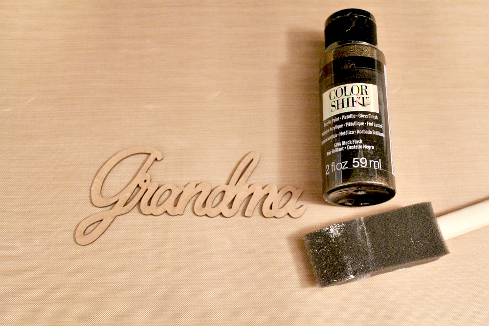 Knowing I was going to use mainly bright colors in my layout, I went with a contrasting color for my title. I painted my chipboard with Color Shift from Folk Art in Black Flash. If you have not tried this paint yet, I highly recommend it! The coverage is fantastic and I love the end result!