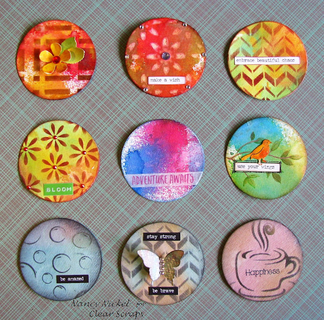 I've had some fun creating my first Artist Trading Coins, using a variety of Clear Scraps stencils! Clear Scraps has such an incredible variety of stencils that are perfect for this new creative trend.