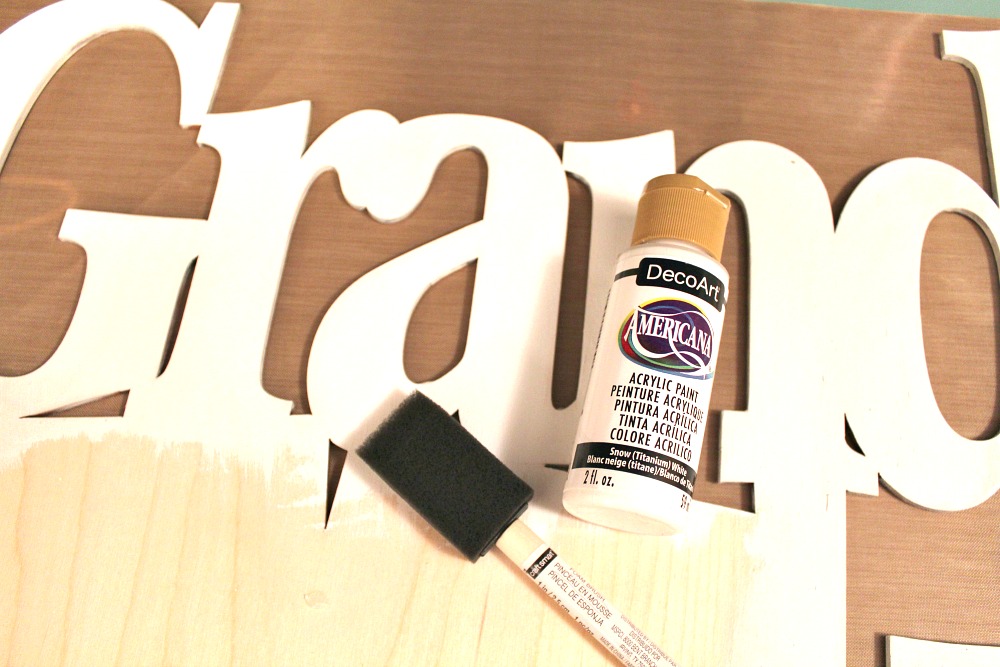 I began by using white acrylic paint on the letter portion of my frame. I also outlined the edges of the frames that will hold my photos.