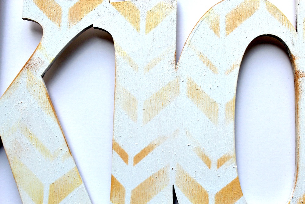 I wanted to add pattern to my letters so I used my 12 Inch Chevron Mascil and applied Distress Oxide in Spiced Marmalade. I found that using a circular motion works best when inking.