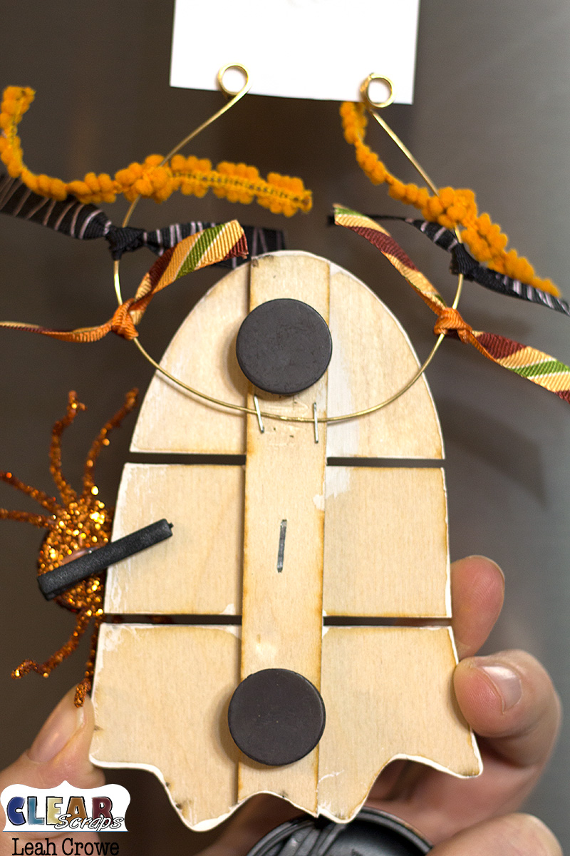 I then used some wire in my stash and wrapped the wire on both sides around a paintbrush to create the photo holder. I stapled it to the backside using my tiny attacher. I then hot glued two strong magnets to the backside so it could go on the fridge.