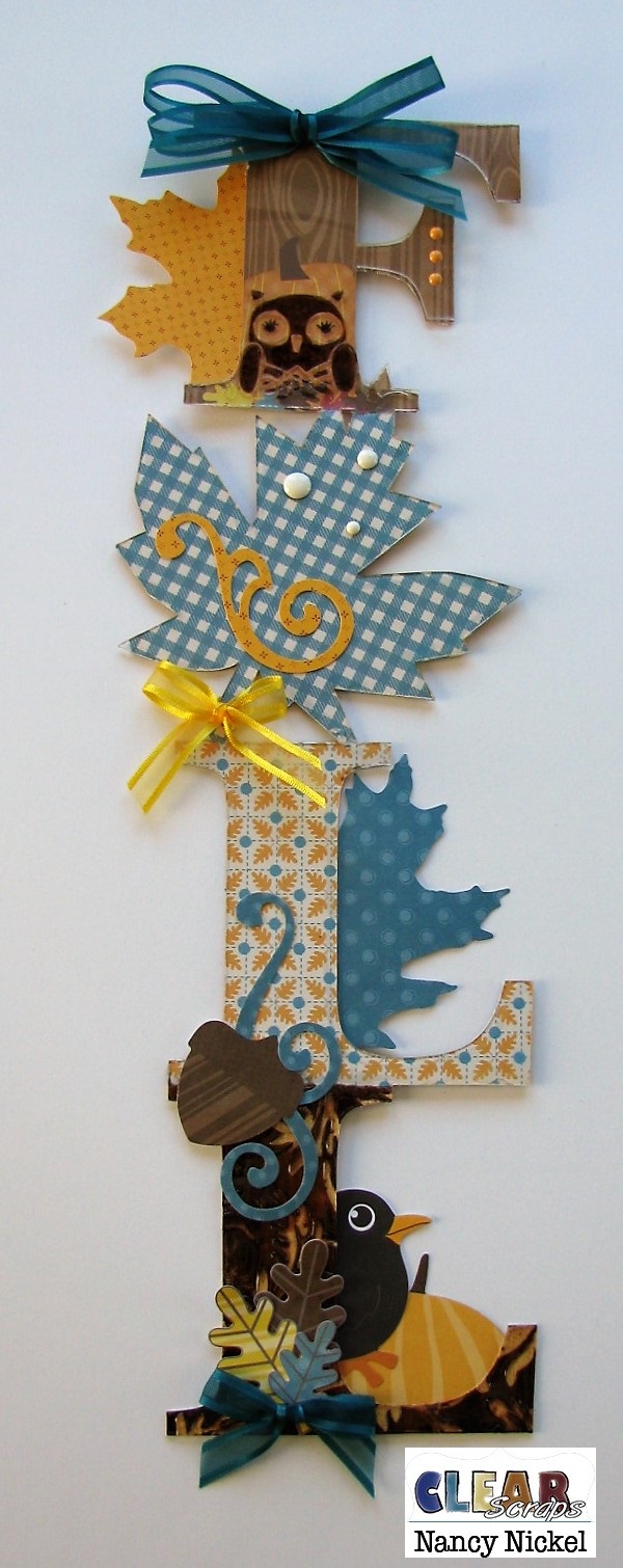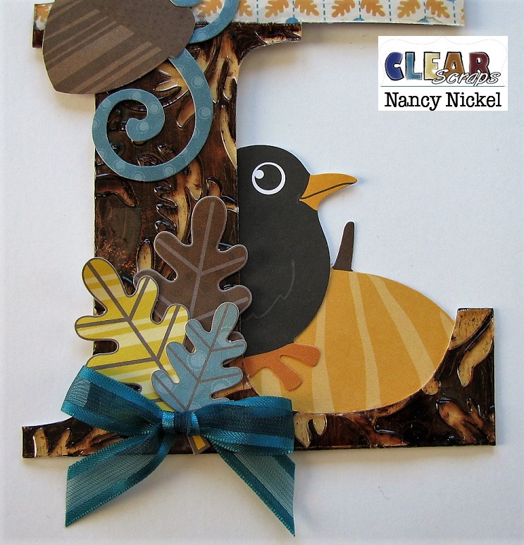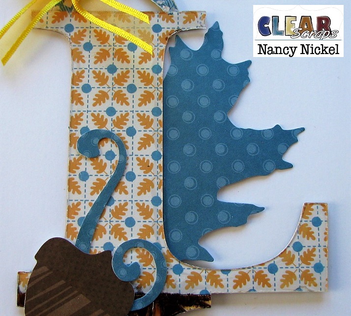 I added another large die-cut leaf behind the letter.