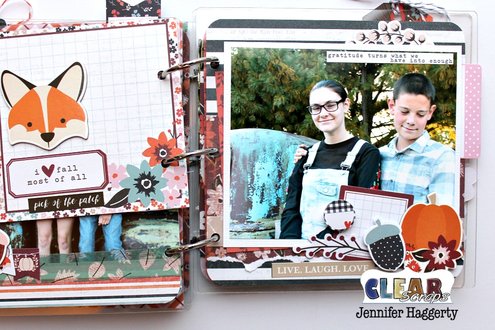 Hello and happy Saturday! It's Jennifer here to share a mini album I created with the Acrylic 6×6 Regular Album! Fall is one of my favorite times of year and I love to scrapbook autumn-themed photos! Our area has a local pumpkin farm that we go to every year for photos; I usually have to bribe my kids now since they are older LOL