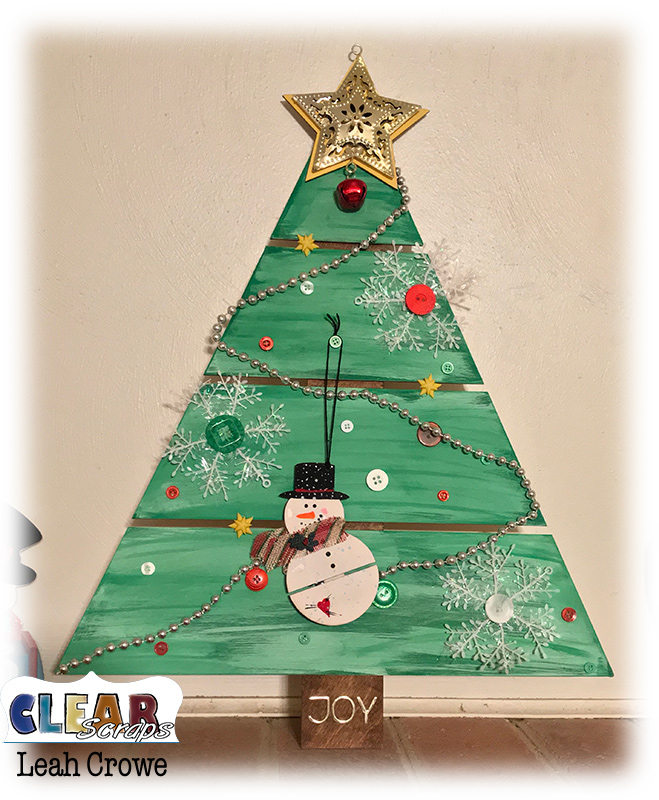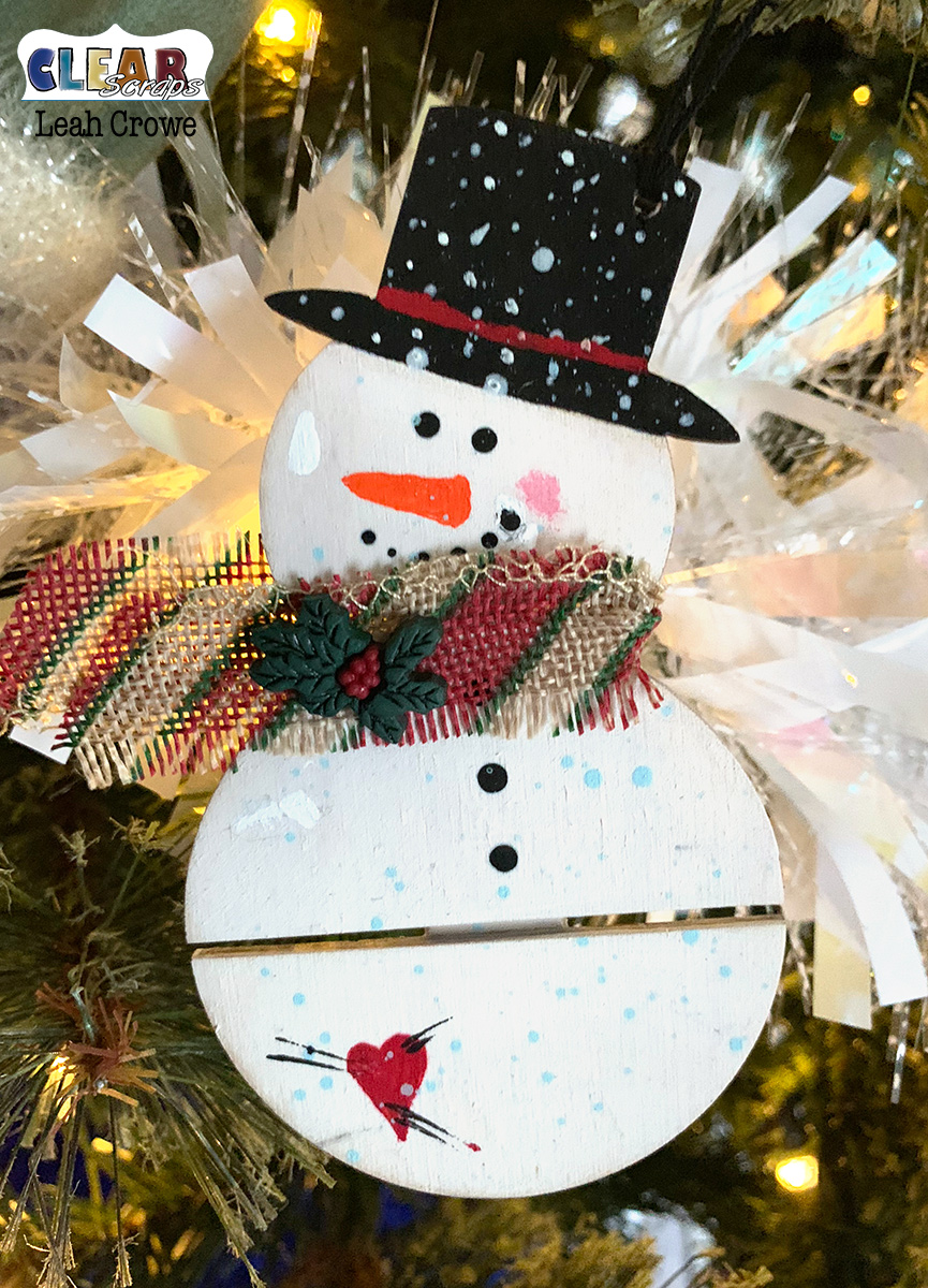 Hi Clear Scraps, friends!! Leah here with you today sharing this adorable mini wood snowman pallet that I turned into a Christmas ornament.
