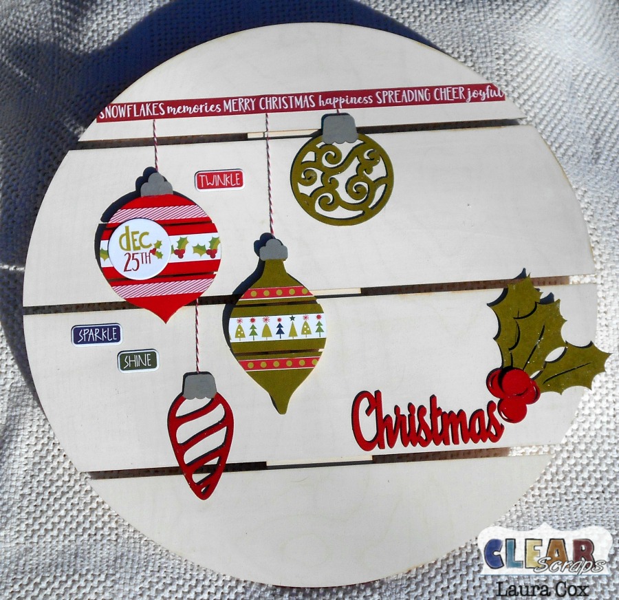 Clear Scraps: Circle DIY Pallet Shape, X-mas Swirl Bulbs Chipboard Embellishments,
