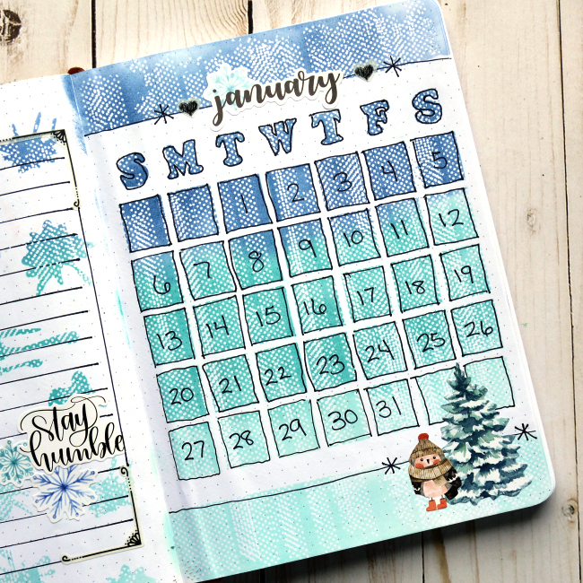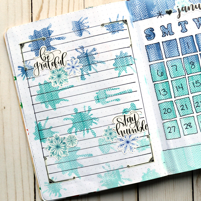 I know, I know, it's not Christmas yet and I want you to think about January? But seriously, it's gonna be January before we know it and so today I have a January Bullet Journal Future Log spread to share with you. This one showcases a couple of our Mascils: the 6 inch Calendar Mascil and the 6 inch Paint Splats Mascil! Here's the spread!
