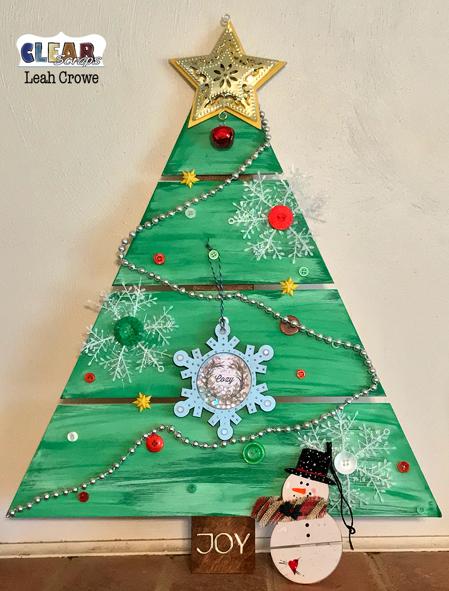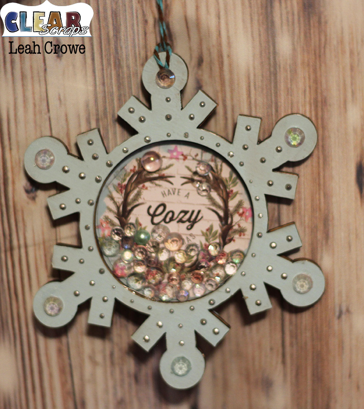 Today I am back with another ornament, this time a mini shaker snowflake that looks so cute on a real Christmas Tree or a fabulous Wood Pallet one from Clear Scraps!