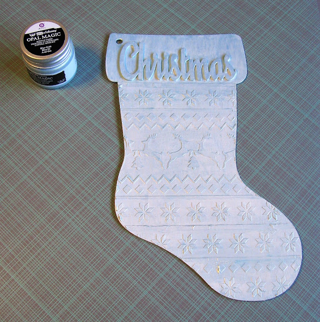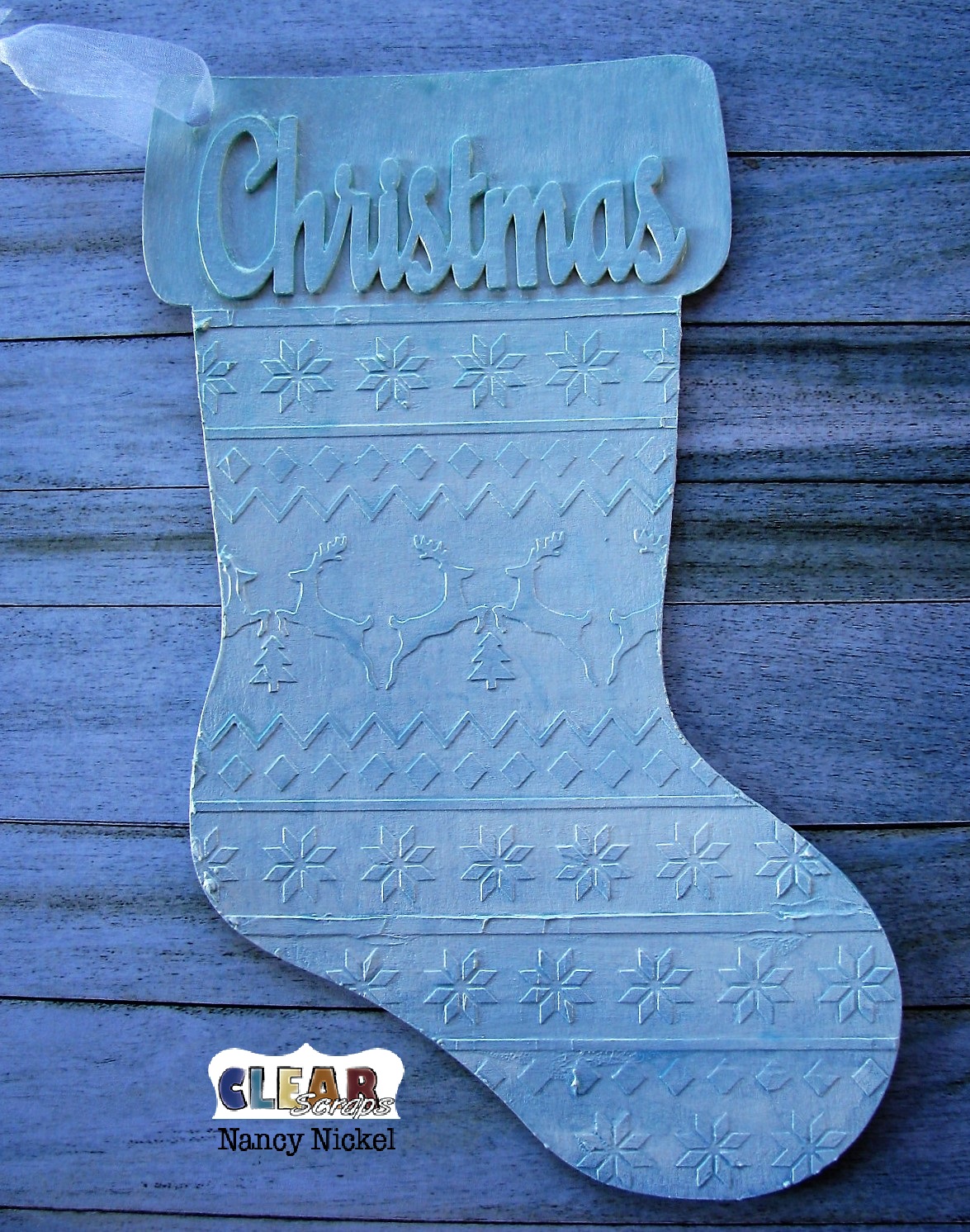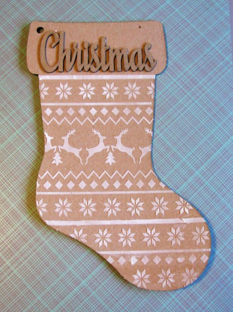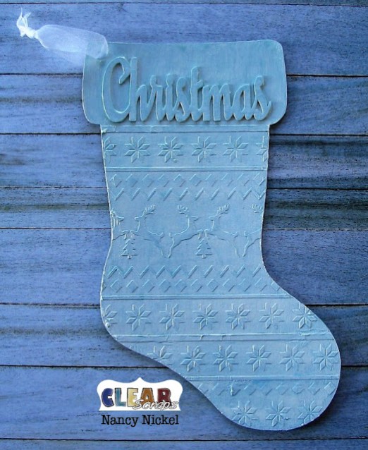 Then I adhered the Christmas Chipboard Word Title to the top of the stocking.