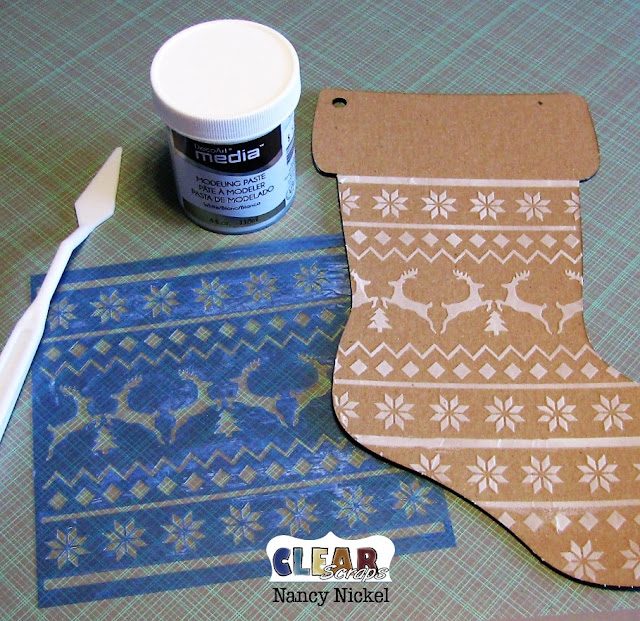 I added modeling paste through the 6" Christmas Sweater Stencil.