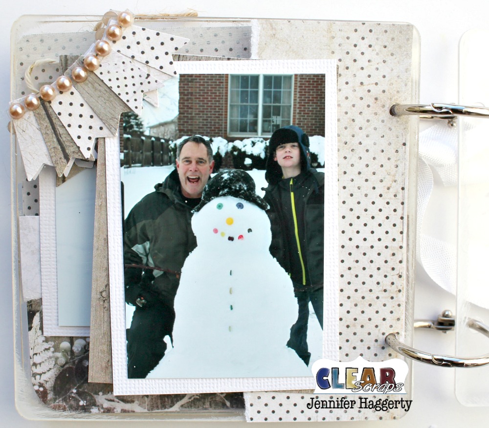 Before moving on to my next pages, I took my StazOn Opaque and lined the edges of my acrylic. This helps give them a snowy look if you are doing a winter or Christmas themed book! Any solvent based ink will work!