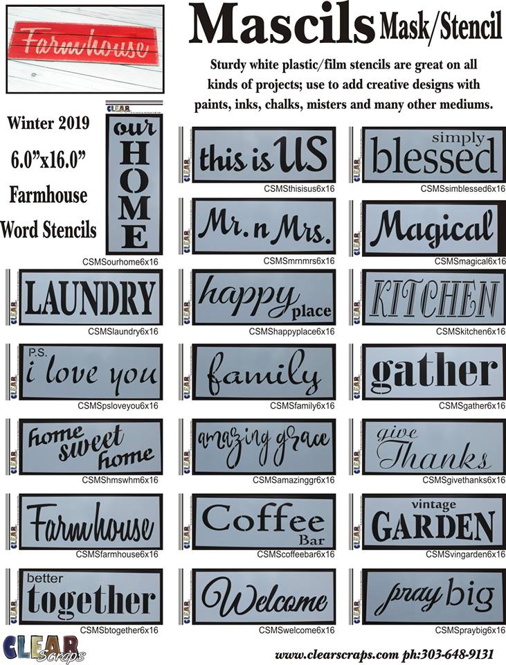 Clear Scraps: Farmhouse Collection/Laundry, Gather and Farmhouse stencils