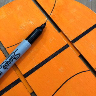 I then traced the shape completely, including the pallets. I cut off the two end pallets to make the arch shape on my basketball. I laid them out so they would be even. I also went with keeping my pallets horizontal instead of vertical, so as not to interfere with the lines I was adding to the basketball.