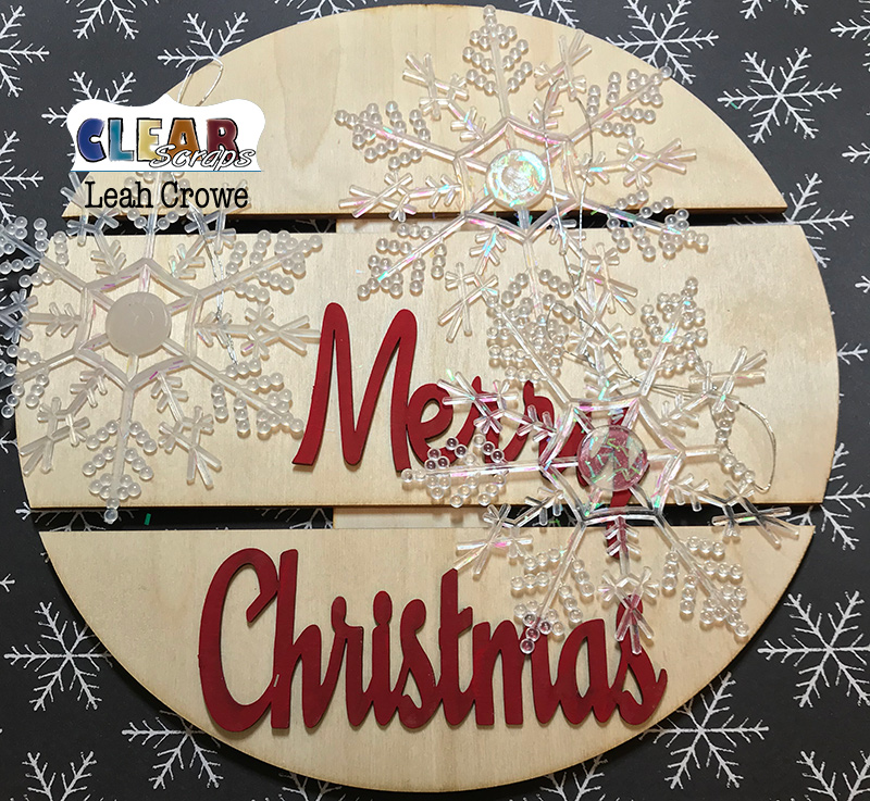 Clear Scraps: Gather wood word title, Merry & Christmas chipboard word title, 8" medium circle pallet