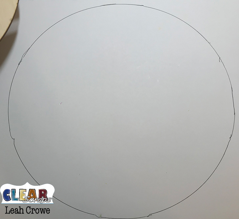 Grab a piece of pattern paper you want for the backside, turn it over, and trace the medium circle pallet with a pencil. Cut around the traced circle and set aside.