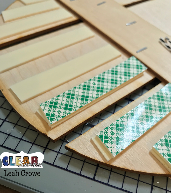 Next, I placed foam tape on the back of the circle. I had to make sure the pattern paper had something to adhere to, so I ended up doubling up the foam tape.