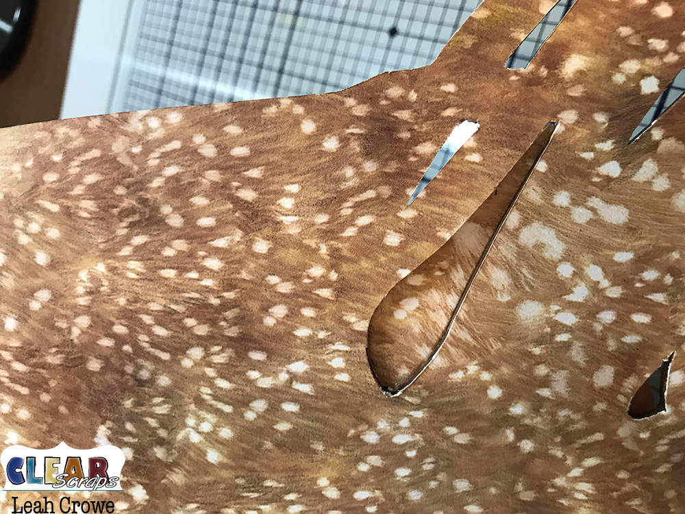 Time to finish up the front. I knew cutting out the pattern paper from the wood title, gather, would be a little tricky. I found this next tip essential in not tearing the pattern paper while removing the paper from the inside of the letters.