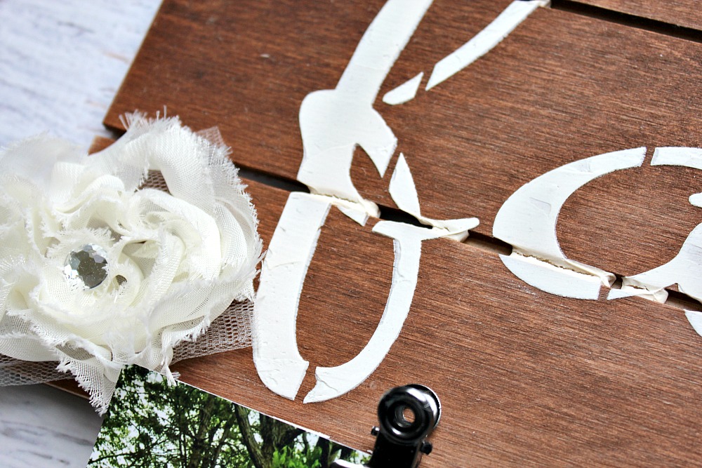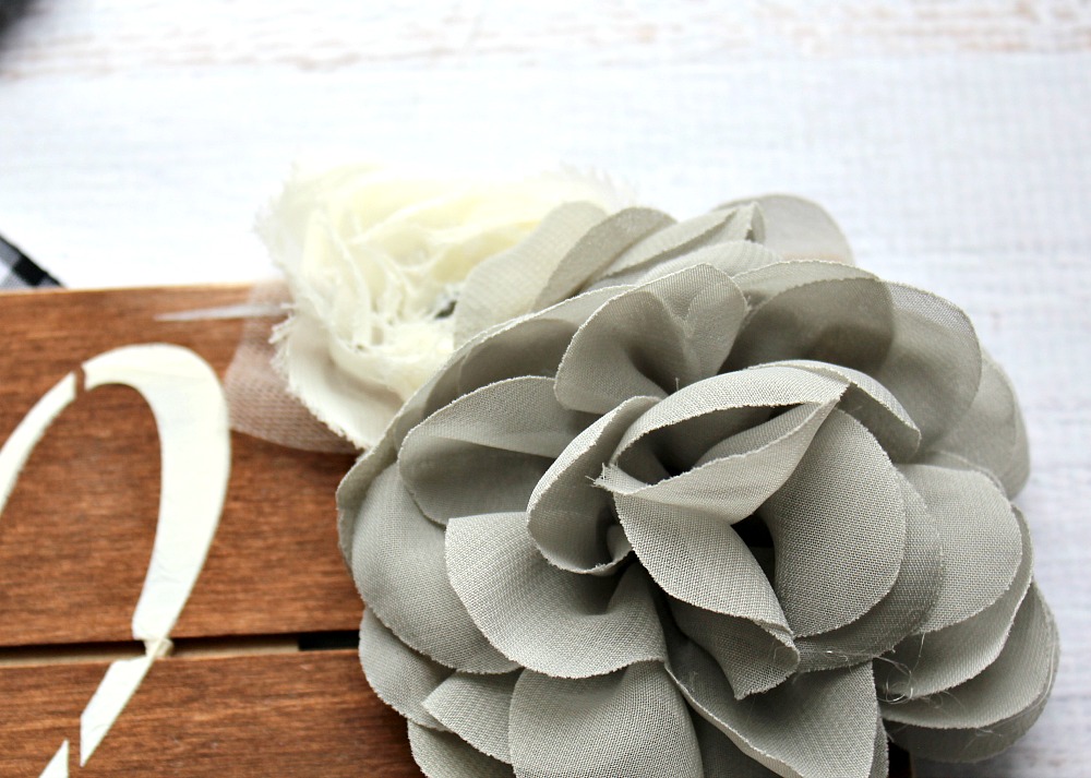 While my hot glue gun was plugged in, I added flowers to the corners of my pallet to accent. Its a great way to use up some of your stash (I know for myself I hoard things LOL)