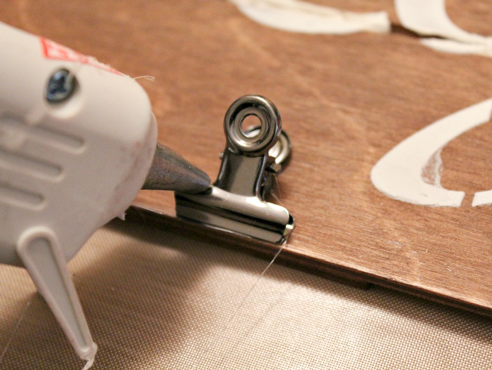 I had some metal clips in my stash that I attached at the bottom of the pallet with my hot glue gun