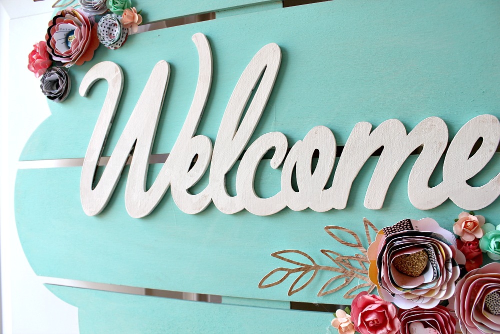 Hello! Happy Friday! It's also a new month which means we are closer to spring! After the deep freeze the Midwest had this week I am so ready! Today, I'm sharing the Flower DIY Pallet Shape that I created as a fun spring-themed door hanger!