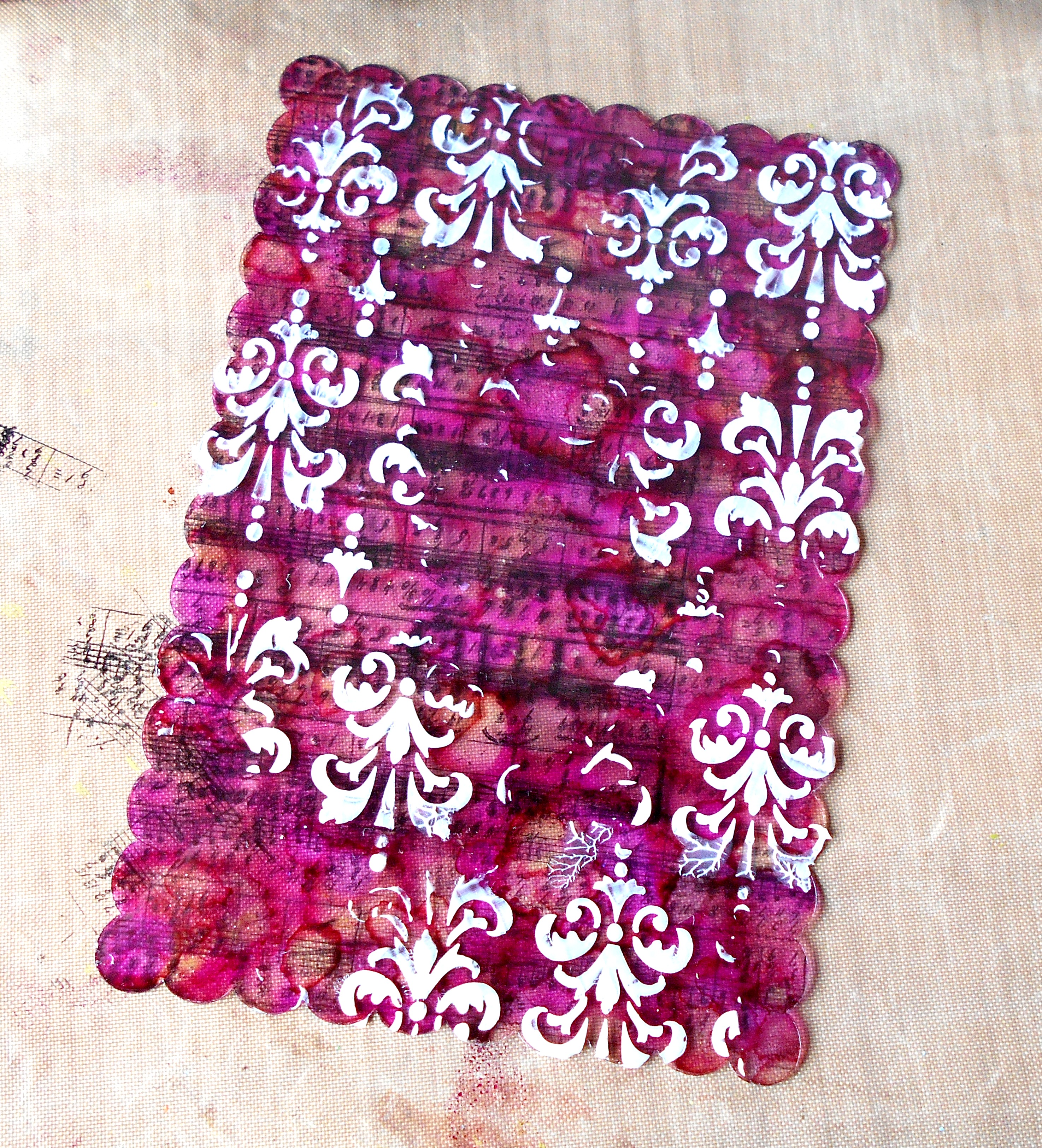 Art Anthology pearl texture paste, patterned paper, stickers.