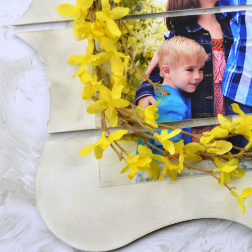 I used the lines on the pallet to determine where to cut my picture and added that to the center. It was a little scary to cut it up but I knew it would have a neat effect!