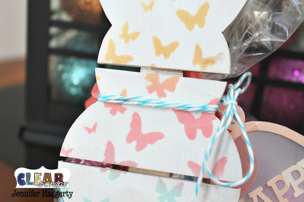 To secure my Bunny Mini Pallet to the clear bag, I used bakers twine from my stash. I also created a fun Easter tag to add as well.